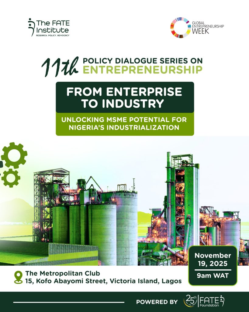The Annual FATE Institute Policy Dialogue Series on Entrepreneurship Program is hosted by the FATE Institute of FATE Foundation, which is the Foundation’s research, policy, and advocacy division leading innovative thinking and creating platforms to enable idea exchange and problem-solving strategies to foster sustainable entrepreneurship in Nigeria. Over the past decade, it has become a respected agenda-setting forum that brings together policymakers, private sector leaders, and ecosystem stakeholders to develop actionable, evidence-based solutions that drive entrepreneurship growth and sustainability.